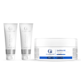 Das Sapphire Kit besteht aus dem Clarifying Shampoo (60ml), Sapphire Keratin (150g) und der pH Sealing Mask (60ml).